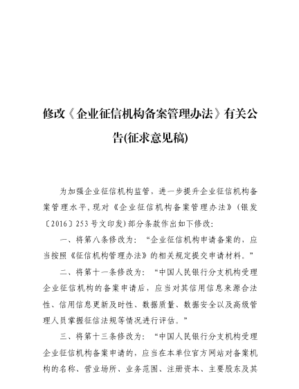 《企业征信机构备案管理办法》拟修订!征信业务非主营业务将注销备案!